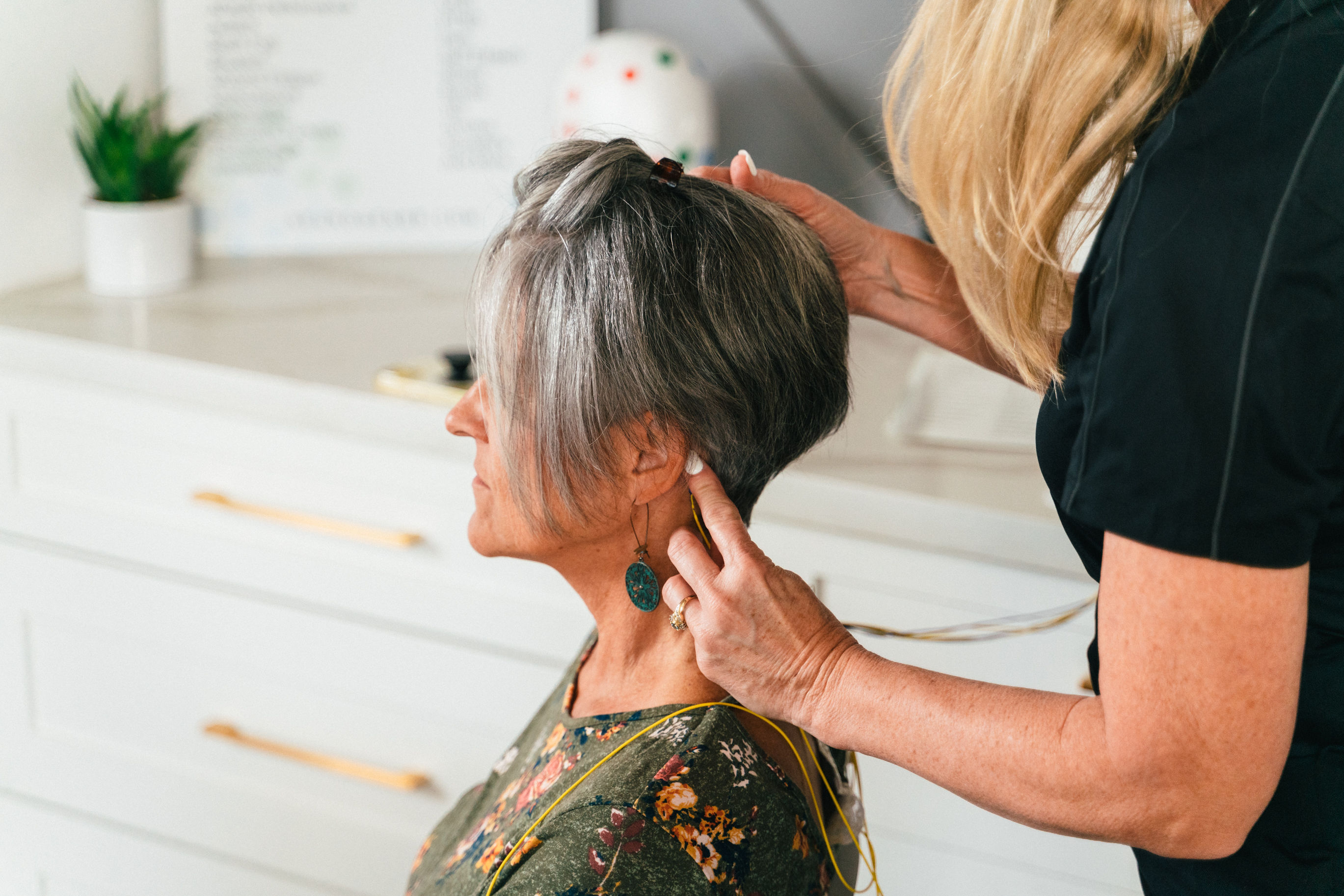 When you arrive for your first session, your Practitioner will sit down with you to discuss your goals and review your intake form together. They will explain how the technology works and answer any questions you may have. After that, you will sit in a chair and relax for 20 – 25 minutes while your practitioner moves EEG electrodes around your head to measure and balance the neural activity in each area. Our treatment is passive, rather than active, which means you do not need to perform any activities or other stimuli during the session.